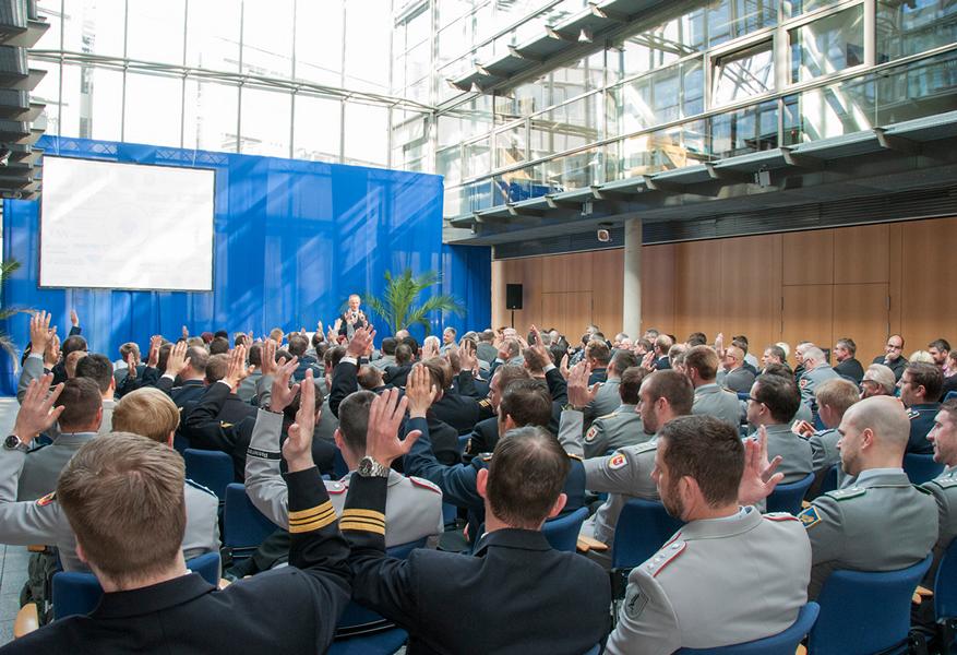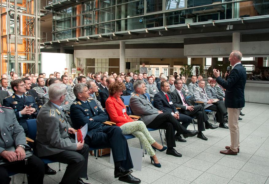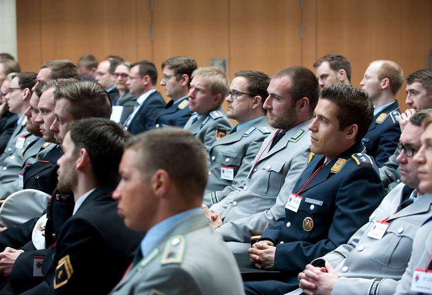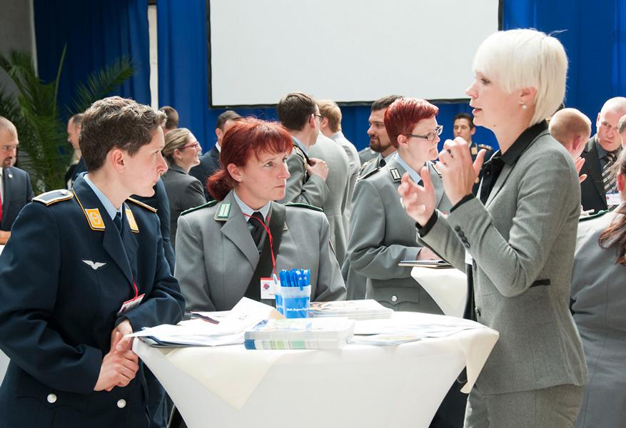Auch die Bundeswehr bietet SaZ beim Wechsel in ihre Verwaltung interessante Umstiegs- und Aufstiegsperspektiven. Regierungsamtsrätin Cornelia Michel informierte über die Laufbahnvoraussetzungen des Bundeswehr-Binnenmarktes.