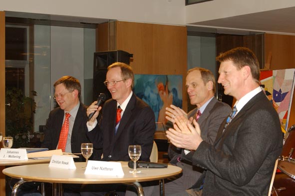 An der Podiumsdiskussion beteiligten sich neben Johannes Jakobs-Woltering, dem Leiter des AK "Bundeswehr und Wirtschaft", auch Christian Nowak vom IHKG und Uwe Natterer von der Firma Smoke Free Systems sowie Karl Freller. Der Staatssekretär im Bayerischen Kultusministerium referierte zum Thema Suchtprävention an bayerischen Schulen. Er stellte die Ansätze vor, mit denen in der Region die Sucht bekämpft wird.