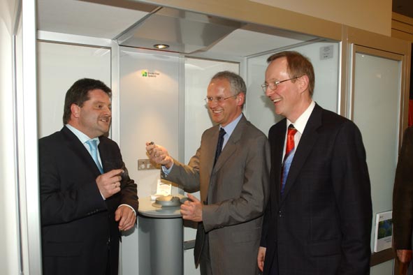 Beim anschließenden Empfang durfte aber geraucht werden. Denn dank einer von "Smoke Free Systems" entwickelten Filteranlage war schlechte Luft kein Thema mehr. Uwe Natterer, Repräsentant des Unternehmens in Nordbayern, stellte die mobilen, offenen Raucherkabinen vor, deren kleinste Ausführung gerade mal zwei Quadratmeter Aufstellfläche benötigt.