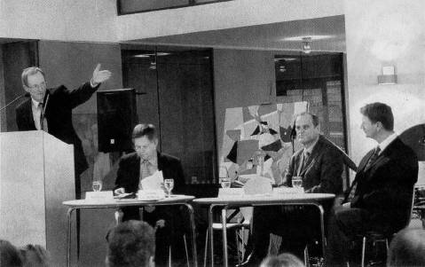 Über die Gratwanderung zwischen Verbot und Anerkennung individueller Freiheit diskutierten Kultus-Staatssekretär Karl Freller, Christian Nowak Geschäftsführer IHKG Fürth, Johannes Jakobs-Woltering, Vorsitzender des AkBwW, und Vitalberater Uwe Natterer von der Firma Smoke Free Systems.