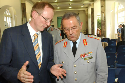 General Wolfgang Schneiderhan, der Generalinspekteur der Bundeswehr, umriss in seiner Grundsatzrede den Beitrag der Bundeswehr zur ressortübergreifenden Sicherheitsvorsorge. Der oberste Soldat beschrieb die Streitkräfte als Instrument unter dem Primat der Politik. Die Politik müsse die Interessen Deutschlands zunächst definieren, dann aber gehöre der Wille dazu, sie auch durchzusetzen. Allerdings seien die militärischen Optionen jeweils nur eine von vielen. Den anstehenden Kongoeinsatz verteidigte Schneiderhan vehement gegen Kritik: „Da wird der Eindruck erweckt, wir gingen als Anfänger irgendwohin, dem ist aber nicht so.“