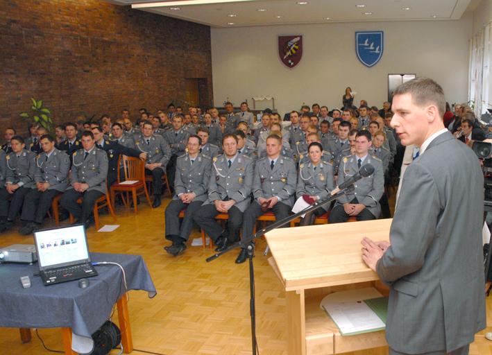 Rainer Bomba, der Vorsitzende der Geschäftsführung der Regionaldirektion Bayern in der Bundesagentur für Arbeit, machte die Soldatinnen und Soldaten mit der aktuellen Lage auf dem Arbeitsmarkt vertraut. Trotz der derzeitigen Finanzkrise und der möglichen Rezession würden fachlich versierte Arbeitskräfte nach wie vor gebraucht. Auch bei gewissen wirtschaftlichen Einbrüchen würden die Prognosen positiv bleiben. „Sie werden gebraucht“, ermutigte Bomba die interessierte Zuhörerschar. Allerdings seien eine gute Ausbildung, Mobilität und die Bereitschaft zur ständigen Weiterbildung unerlässliche Voraussetzungen für eine ordentliche berufliche Karriere.