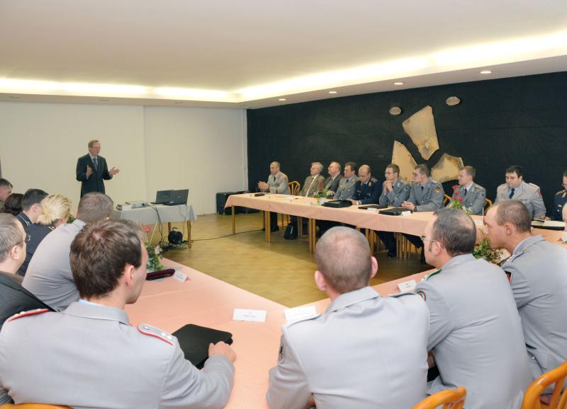 Gastgeber Oberstleutnant Michael Mittelberg (Kommandeur des Kampfhubschrauberregiments 26) und Generalmajor Wolfgang Born forderten in ihren Grußworten die Seminarteilnehmer auf, sich planmäßig und gezielt auf das Zivilleben vorzubereiten, sich ein Bild von den zivilberuflichen Anforderungen und Chancen zu verschaffen, um eine reibungslose Wiedereingliederung in die zivile Arbeitswelt zu erreichen.Monika Jakobs-Woltering vom Arbeitgeberservice der Nürnberger Arbeitsagentur, die wortgewandt die anschließende Vortragsreihe moderierte, gab Hinweise zum Arbeitsmarkt in Bayern. Trotz der wirtschaftlichen Krise würden leistungsfähige und qualifizierte Mitarbeiter immer wieder gebraucht und sogar gesucht. Die ausscheidenden Soldaten auf Zeit würden auch nicht alleine gelassen. Der Vorteil dieser Personengruppe liege darin, dass die abgeschlossene Berufsausbildung durch die Erfahrungen und Ausbildungsgänge in der Bundeswehr ergänzt würden und so adäquate Partner für die Wirtschaft bereit stünden.