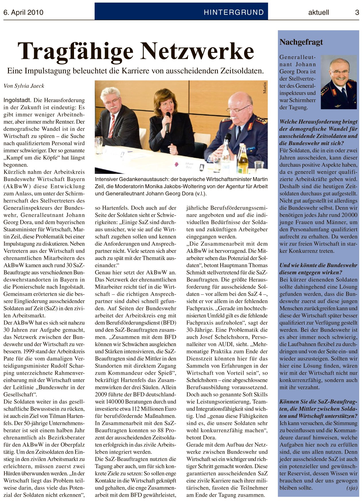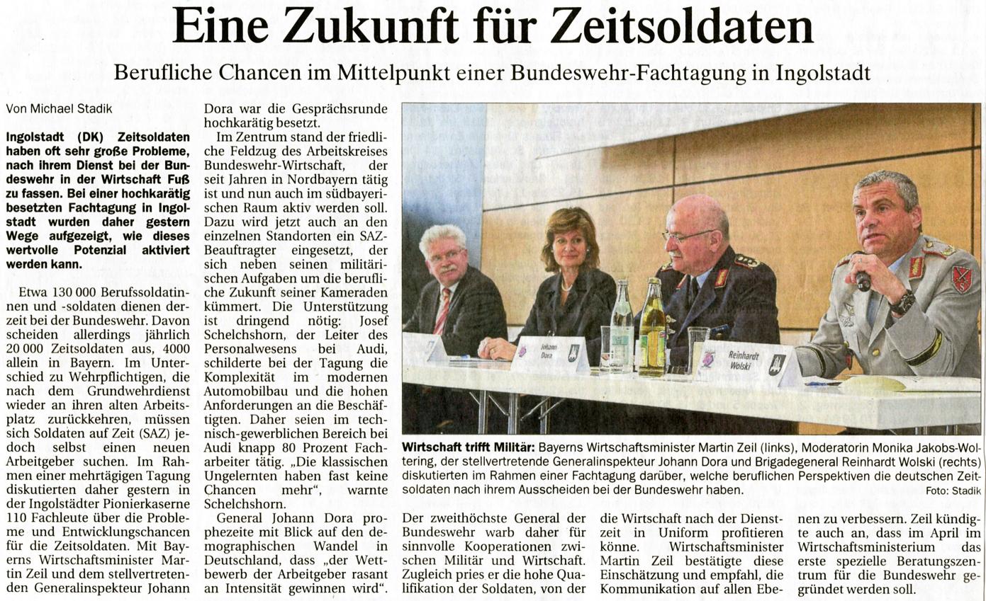 Der bayerischen Wirtschaftsminister Martin Zeil, Wehrbereichspräsident Michael Brod sowie alle Vertreter aus Bundeswehr und Wirtschaft sagten ihre Unterstützung für diese richtungsweisende Initiative zu.