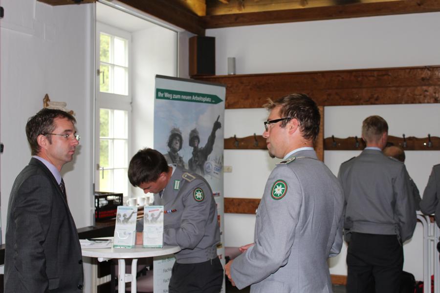 Der erfolgreiche Personalberater betonte die Wichtigkeit der Praxisorientierung in der Ausbildung, sowie die große Bedeutung einer sorgfältigen Vorbereitung der Soldaten auf die Gespräche mit den Unternehmensvertretern: „Hierzu gehören vor allem die Erstellung eines Lebenslaufes sowie die persönliche Zielfindung.“